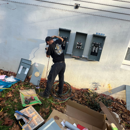 We offer residential electrical services including smart home automation, LED lighting, security cameras, electrical wiring and troubleshooting, panel upgrades, EV charger installation, remodeling electrical work, and custom interior and exterior lighting solutions.